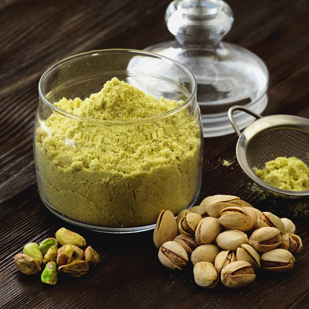 Harina de pistacho obtenida a partir de nuestro pistacho premium, aporta sabor, color y nutrientes a recetas dulces y saladas con un toque distintivo.